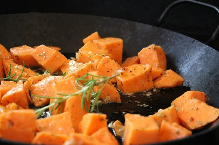 고구마는 소화가 잘 되고 섬유질이 많아 장 건강에 좋은 음식입니다. 구워서 간식으로 먹기 좋습니다.