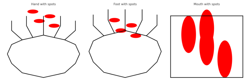 발열이 시작된 지 1~2일 후에는 입 안에 작은 궤양이 나타날 수 있습니다. 혀, 잇몸, 뺨 안쪽 등에 작은 붉은 반점이 생기고, 이 반점들이 물집으로 발전하면서 통증을 유발할 수 있습니다. 이로 인해 아이가 음식을 먹기 힘들어할 수 있습니다.